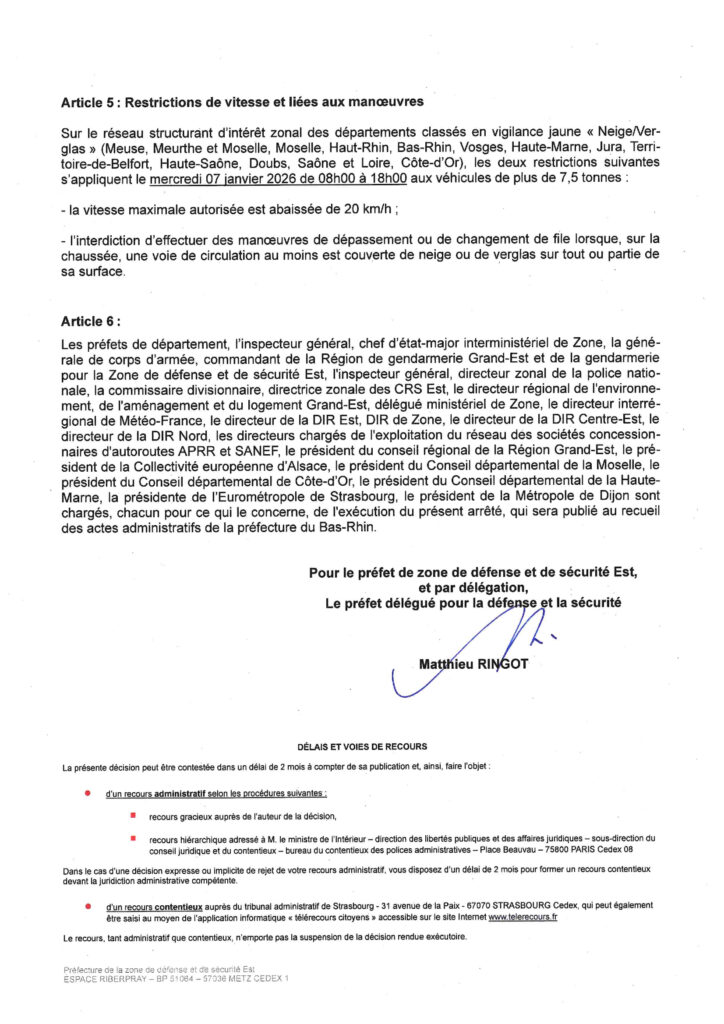 7/01/2026 : Arrêté portant interdiction de circuler pour certains types de véhicules