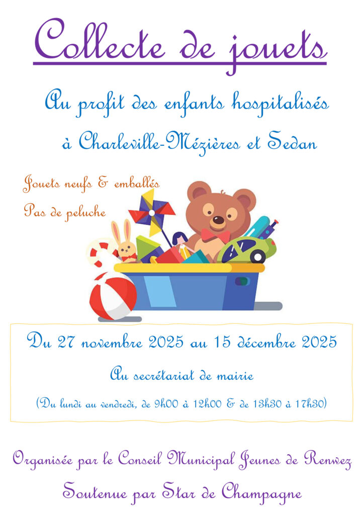 Au profit des enfants hospitalisés à Charleville-Mézières et Sedan, organisée par le Conseil Municipal Jeunes de Renwez.